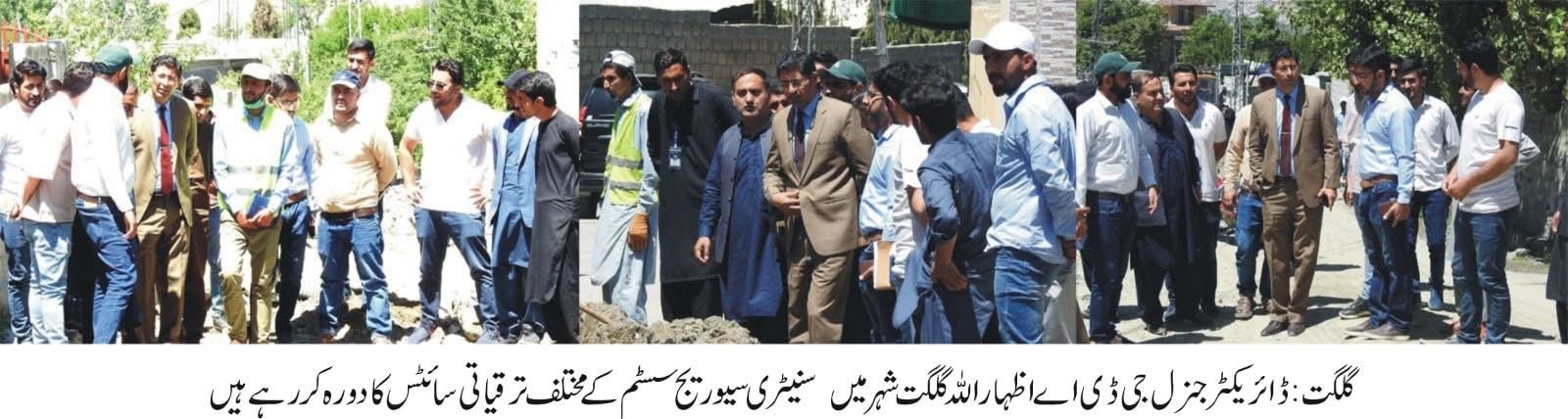 ڈائریکٹر جنرل جی ڈی اے کا سینیٹری سیوریج سسٹم گلگت شہر کے مختلف ترقیاتی سائٹس کا دورہ، معیار پر اظہار اطمینان اور پیش رفت میں مزید تیزی لانے کی ہدایت