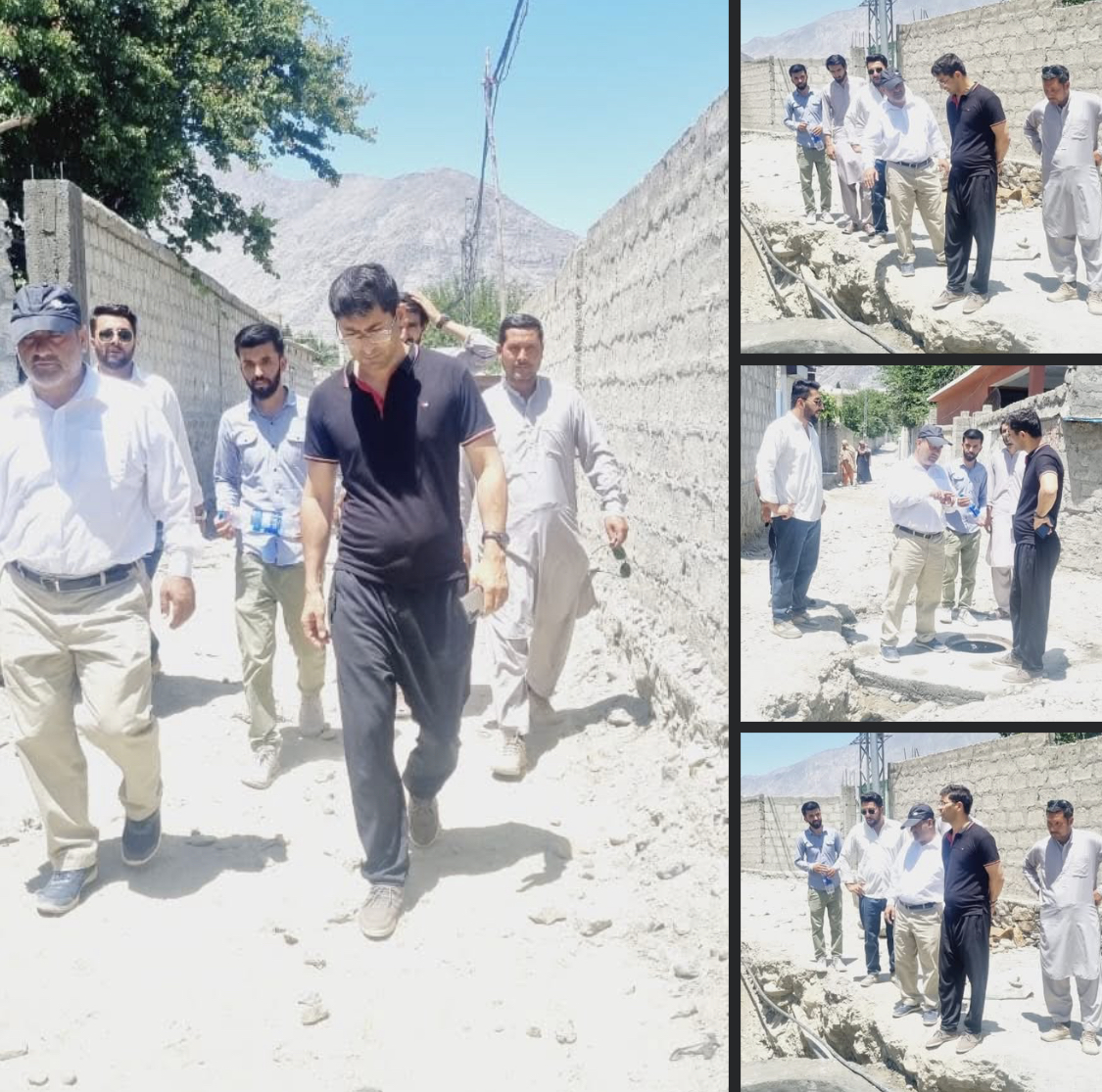 *ڈائریکٹرجنرل گلگت ڈویلپمنٹ اتھارٹی اظہاراللہ کا سینیٹری سیوریج پرجیکٹ ایف سی روڈ ایریا جوٹیال کا دورہ*