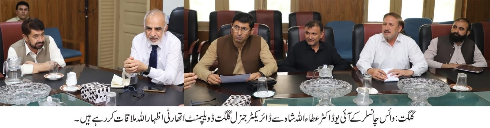 وائس چانسلرجامعہ قراقرم سے ڈائریکٹر جنرل گلگت ڈویلپمنٹ اتھارٹی کی ملاقات، کنوداس سے جامعہ قراقرم تک پینے کے صاف پانی کے منصوبہ پر تبادلہ خیال۔